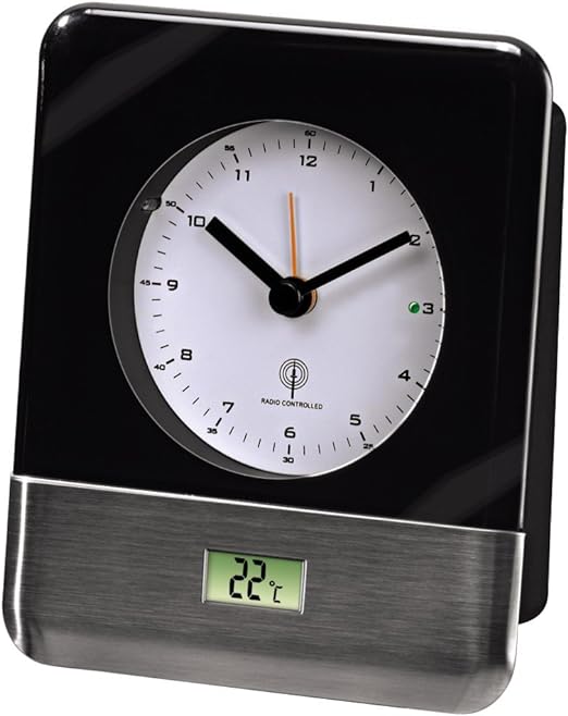 Budzik z termometrem - Budzik ze wskazaniem czasu, daty i temp. Materiał: tworzywo sztuczne. Zasilanie: 1x AA